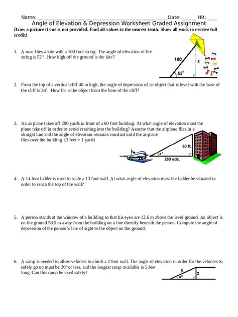 Angle Of Elevation And Depression Worksheet With Answers