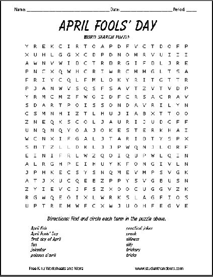 Web here’s a new set of april fools day worksheets to create some pretty fun learning opportunities on april 1st. Kids love these interactive april fools day spreadsheet for this april fools day thematic unit of study. Have students find all the words associated with april fools day.